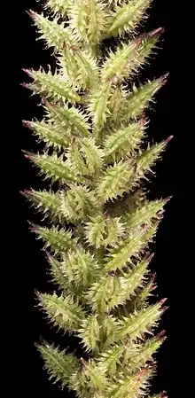 Tragus australianus, common names (in Australia) Burr grass, Small burrgrass, and Tickgrass, is a summer ephemeral grass (in the Poaceae family),[1] first described by Stanley Thatcher Blake in 1941.[2] It flowers in response to rain.[1] Its native range is mainland Australia,[3] where it is found in arid and semi-arid areas.[1][4]