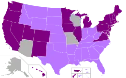 Many jurisdictions in the US currently offer third gender markers on driver's licenses,[105] including Arkansas,[106] California, Colorado, Connecticut,[107] Delaware, Washington D.C., Hawai'i, Massachusetts,[108][109] Maine, Maryland, Michigan,[110][111] Minnesota, Nevada, New Hampshire,[112] New Jersey,[113] New York,[114] Ohio, Oregon, Pennsylvania,[115][116] Rhode Island,[117] Utah, Virginia,[118][119] Vermont, and Washington.