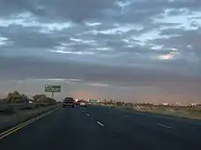 Sacramento as seen from the distance in the eastbound lanes of I-80 in Yolo County