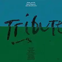 Tribute is a live double album by the Keith Jarrett Trio recorded at the Kölner Philharmonie on October 15, 1989 and released on ECM a year later. The trio—Jarrett's "Standards Trio"—features rhythm section Gary Peacock and Jack DeJohnette.[1]