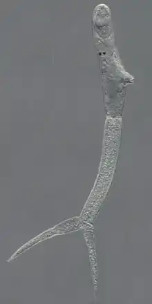 Trichobilharzia is a genus of trematodes in the family Schistosomatidae. They are worldwide distributed parasites of anatid birds and causative agents of human cercarial dermatitis.[2]