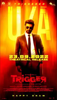 Trigger is an 2022 Indian Tamil-language action thriller film written and directed by Sam Anton and produced by Pramod Films and Miracle Movies.[1] The film stars Atharvaa, Tanya Ravichandran and Arun Pandian in lead roles.[2] The film's music and score is composed by Ghibran, with cinematography handled by Krishnan Vasant and editing done by Ruben.