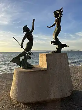 Tritón y Sirena (also known as Tritón y Nereida)[1] is a sculpture by Carlos Espino, installed along Puerto Vallarta's Malecón, in the Mexican state of Jalisco. Installed the 1990, the artwork depicts Triton (son of Poseidon and Amphitrite) and a Siren (sometimes considered a Nereid).[1][2]