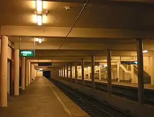 Trosterud is a station on Furusetbanen (line 2) in the Alna borough between Haugerud and Lindeberg, 8.4 km from Stortinget. The station is located overground, but is inside the Trosterud shopping centre, and not an open-air station. It is located in a largely residential area with several apartment buildings.