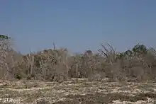 East from the lake basin, at the foot of the Mahafaly Plateau, is the second zone; dry forest on sandy soils[9] derived from sand deposits of recent and Quaternary origin.[17] The vegetation is made up mostly of short statured trees, shrubs and open unvegetated areas. Some underground water drains under the Mahafaly Plateau, and comes to the surface at the foot of the plateau in caves or as seeps and springs. These areas of ephemeral or permanent water sources support larger fruit trees (e.g. Ficus polita, Tamarindus indica, Salvadoria angustifolia),[9] add greatly to the biodiversity of the zone and are usually found near the border of the third zone, the limestone Mahafaly Plateau.[9]