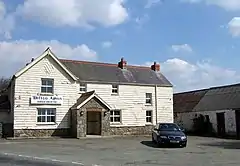 The Tufton Arms inn stands at the crossroads. The pub holds a beer festival on the first Friday in July.[4] According to a 19th-century map, this was the only inn in the parish.[5] Coursing meetings were hosted by the pub in the mid-1800s[6] and, in a fox hunting report, it was described as having "good beer".[7] In 1863, the landlady, Mrs Thomas, died "at an advanced age".[8] A Mr Thomas was landlord in 1868, when he was called as a witness in Haverfordwest in a case of sheep-stealing.[9] The thief, Caleb Morris, was sentenced to five years, and later Thomas, after a collection, was presented with a watch in recompense for his sheep.[10] It was the annual custom of the Reverend C. H. Barham to entertain his tenants and friends at Thomas's inn, which in 1873 was able to provide a roast dinner and ale for "upwards of 90 persons".[11]