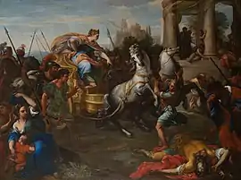 Tullia driving her Chariot over her Father is a 1687 painting by Giuseppe Bartolomeo Chiari which depicts the last Queen of Rome Tullia driving her chariot over the dead body of her father, King Servius Tullius.[1] The work was commissioned by Jacopo Montinioni and was later purchased by John Cecil, 5th Earl of Exeter after the formers death.[2] It is held today by the Burghley House Historic Trust.[3]