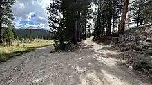 The Tuolumne Meadows area is served by the Tioga Pass Road (California SR 120), which had been paved by the 1920s. Its present route through the meadows was laid out in the 1930s by the Civilian Conservation Corps. A housing area for seasonal employees was relocated at that time, whose new site includes a surviving collection of fine National Park Service rustic CCC-built structures listed on the National Register of Historic Places as "Tuolumne Meadows" in 1978.[11][1]