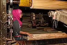 A woman working a modern lathe