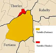 Turtulla townland in Thurles civil parish (red) contrasted with the townland of the same name in Fertiana civil parish