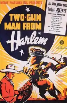Two Gun Man from Harlem is a 1938 American contemporary Western film directed by Richard C. Kahn.[1] It was produced by Merit Pictures, distributed by Sack Amusement Enterprises and featured an all-African-American cast.