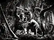 Promotional photo of a Tyrannosaurus battling King Kong (1933)