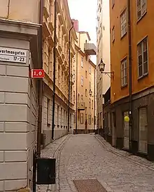 - 1 2 "Innerstaden: Gamla stan". Stockholms gatunamn (in Swedish) (2nd ed.). Stockholm: Kommittén för Stockholmsforskning. 1992. p. 79. ISBN 91-7031-042-4.
