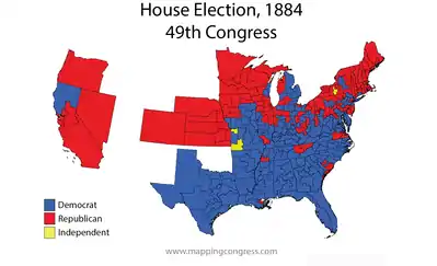 - 1 2 3 Dubin (p. 271) counts 182 Democrats, 142 Republicans, and 1 Greenback at the start of the 49th United States Congress.