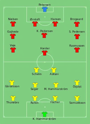 4. 1 2 "Tactical Line-up – Sweden-Denmark" (PDF). UEFA.com. Union of European Football Associations. 10 July 2013. Retrieved 10 July 2013.