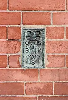 Flush bracket SO260 on the wall of Barclays Bank on Dee Lane, West Kirby. 7.8320m ASL. Also used as Tide Gauge Aux 1.