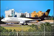 The aircraft involved in the accident was a 10-year-old Airbus A300F4-622R, registered as N155UP. It was built in 2003; UPS took delivery of it in February 2004.[6] It was powered by Pratt & Whitney PW4000 engines. At the time of the accident, it had accumulated about 11,000 flight hours in 6,800 flight cycles (a flight cycle is one takeoff and landing).[7]:19[8]
