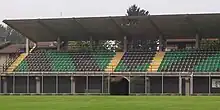 The USD Castellanzese main ground and location, for most home games, is the municipal stadium of Castellanza, built in 1930 and located on Via Cadorna, Castellanza, where the headquarters of the club are also located. On September 20, 2015, the municipality of Castellanza decided to rename the stadium "Stadio Comunale Giovanni Provasi" after Giovanni Provasi.[21] It has undergone many reconstructions over time. The stadium has been renovated twice, initially at the end of the 1970s, when an athletics track and a lighting system were built. The second renovation took place in the 1990s and a grandstand was built with a roof and seats in black and green (the team colours). The grandstand can accommodate 500 people.[22]