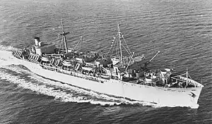 ![]() USNS Marine Lynx (T-AP-194) underway during the 1950s. | |