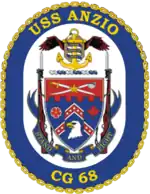 USS Anzio (CG-68) is a Ticonderoga-class guided missile cruiser that served in the United States Navy. She was named for the site of a beachhead invasion of Italy by Allied troops from 22 January to 23 May 1944. Her keel was laid down by the Litton-Ingalls Shipbuilding Corporation at Pascagoula, Mississippi on 21 August 1989. The ship was launched on 2 November 1990, and commissioned on 2 May 1992.[2] Anzio was decommissioned on 22 September 2022.[1]