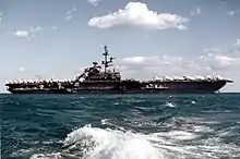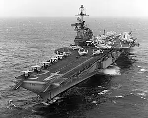 From August 1966 to January 1967, Franklin D. Roosevelt made her only deployment to Southeast Asia, spending a total of 95 days "on the line." Her embarked airwing, Carrier Air Wing One, consisted mainly of F-4 Phantom IIs and A-4 Skyhawks. Roosevelt received one battle star for her service during the Vietnam War.[1]