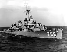 USS Jarvis (DD-799) was a Fletcher-class destroyer of the United States Navy, the third Navy ship named for Midshipman James C. Jarvis (17871800), who was killed at the age of 13 during the historic engagement between the famed frigate Constellation and the French frigate La Vengeance.