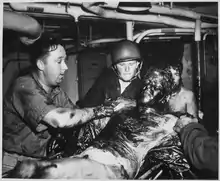 Lt. William B. Neal, Jr. was cited for distinguished heroism following the attack, receiving the Navy and Marine Corps Medal, Although injured, he continued to provide first aid after the order to abandon ship was given. He continued for over thirty-six hours, saving several lives.[1]