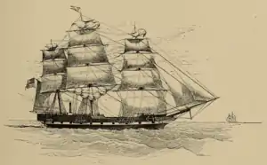 Massachusetts, was a wooden steamer, was built in the shipyard of Samuel Hall, Boston, Massachusetts, under the supervision of Edward H. Delano for Mr. R. B. Forbes in 1845. As an auxiliary steam packet, she helped pioneer commercial steamer service between New York City and Liverpool, England. She was purchased by the War Department in 1847 and served during the Mexican–American War as a troop transport for the Army. In 1848, she steamed round Cape Horn to San Francisco, California, possibly transporting some members and intended for the use of a Joint Commission of Navy and Army Officers (Joint Commission-also called the "Joint Board of Army and Navy Officers" and "Joint Board of Engineers and Naval Officers") who were assigned to explore the U.S. West Coast to identify potential sites for forts, lighthouses and buoys.[1] The Joint Commission consisted of three army engineers: Maj. John L. Smith, Maj. Cornelius A. Ogden[2] and 1st Lt. Danville Leadbetter; and three naval officers: Comdr. Louis M. Goldsborough, Comdr. G.J. Van Brunt, and Lt. Simon F. Blunt.[3]