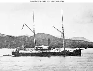 The first USS Palos was a 4th rate iron screw tug in the United States Navy during the late 19th century. She was named for Palos de la Frontera in Spain, the place where Christopher Columbus started the first voyage to America.