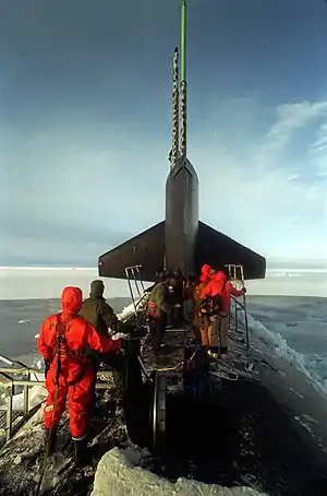 On 25 August 1996, Pogy deployed in support of SCICEX-96 experiments. In October 1996, she transited the Bering Strait and began collecting thousands of water samples from over a hundred locations under the polar ice cap in the Arctic Ocean. She continuously recorded ocean currents and water salinity and temperature, and surfaced 19 times through the ice cap to measure surface conditions before returning to San Diego, California, on 26 November 1996.