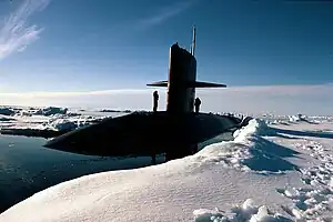 In mid-1970, Queenfish operated below the polar ice pack in the Arctic, mapping the Arctic Ocean's seabed for potential military purposes in the event of a war between the Soviet Union and the United States.[2] She also surfaced at the North Pole in August 1970 and spent 20 days exploring the Siberian Shelf across the Laptev, East Siberian, and Chukchi seas.[1]