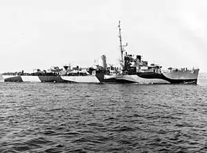 During September, she escorted landing craft of the U.S. 5th Fleet's amphibious force from Saipan to Nagasaki; then, in October, screened transports from Luzon to Sasebo. On 18 October, she departed Japan for the United States.