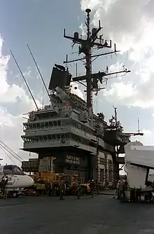 On 5 December 1985 Saratoga became the first aircraft carrier to dock pierside on the island of Diego Garcia in the Indian Ocean.[11]