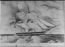 On 8 December 1846, while chasing a blockade runner off Veracruz, Somers capsized and foundered in a sudden squall.[3] Thirty-six of her 80 crew were lost. Eight survivors were rescued by HMS Endymion. Eight more swam to shore and were taken prisoner. English and French vessels rescued the other survivors.[4] On 3 March 1847, Congress authorized gold and silver medals to the officers and men of French, British, and Spanish ships-of-war who aided in the rescue.[3]