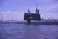 USS Tecumseh (SSBN-628) underway east of Charleston, South Carolina, on 1 January 1986.