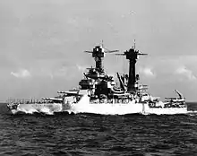 Her original 3-inch antiaircraft (AA) battery was replaced by eight 5-inch (127 mm)/25 caliber guns during 1929–1930.[5] Fleet Problems X and XI were held together in the Caribbean in March and April 1930, and following their conclusion Tennessee visited New York for a month before departing for home on 19 May. In June, she embarked on a tour of the Hawaiian islands that lasted for fourteen months, finally returning to California in February 1932. She thereafter conducted routine operations off the west coast for the next year and a half until October 1934, when she crossed back to the Atlantic for further training there. The rest of the 1930s followed the usual routine.[4] In around 1935, the ship received eight .50-cal. M2 Browning machine-guns. In 1940, two 3-inch guns were re-installed, one on either side of the forward superstructure.[9]