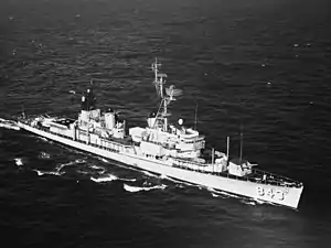 USS Warrington (DD-843) was a Gearing-class destroyer that served the U.S. Navy from the end of World War II to the Vietnam War, when she was damaged by two underwater explosions, causing her to be listed as "beyond repair" and excessed to the Navy of the Republic of China.