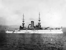 The keel for Wisconsin was laid down on 9 February 1897 at the Union Iron Works in San Francisco. She was launched on 26 November 1898 and was commissioned into the fleet on 4 February 1901.[2] The ship steamed out of San Francisco on 12 March for initial training in Magdalena Bay, Mexico from 17 March to 11 April. She was back in San Francisco on 15 April for repairs, which lasted until 28 May. She then left for Port Orchard, Washington, arriving on 1 June. Wisconsin stayed there for nine days before returning to San Francisco. Later that month, she joined the battleships Oregon and Iowa, the protected cruiser Philadelphia, and the torpedo boat Farragut for a tour of the west coast of the United States. They arrived in Port Angeles, Washington on 29 June and proceeded to Port Whatcom, Washington on 2 July, where they took part in Independence Day celebrations. The following day, they returned to Port Angeles and took part in training exercises, which lasted to mid-July.[3]