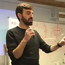 Ubi de Feo (born 1974) is a creative technologist and educator.[1] In his off-time (mostly when doing the dishes) he thinks about ways to improve things or invent new ones. Curiosity drives everything in his life and work.[2] In 2007 de Feo began teaching programming, electronics and other things to whoever wants to learn, often developing his own methods to explain really complicated things in a more tangible, down-to-earth fashion. He does do not try to teach things he doesn’t thoroughly understand, which often leads him to learn entirely new subjects in order to explain them to himself and others.