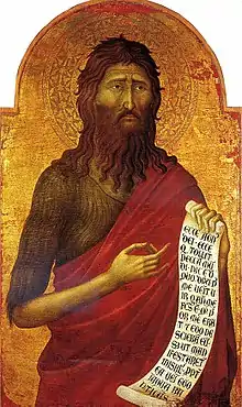 Nerio was born around 1280 in Siena to a family of painters. His father as well as his siblings, Guido and Muccio, were artists. His only known signed work is his altarpiece for the main altar of Saint Croce, dated around 1325. The signature is now lost but was recorded by Vasari. The work was moved from the main altar in 1566 to make way for a ciborium designed by Vasari.[2] It was reassembled in the friars' dormitory where it remained until, at some time around the beginning of the 19th century,[3] it was broken up and the surviving parts sold to William Young Ottley, an English collector. Today the panels are scattered in several museums around the world. The National Gallery in London has eleven. Studies of this work have resulted in putative reconstructions.[2]