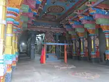 It was originally under the rule of Malayaman Malayarayan chieftains [9] and later switched hands to Miladudaiyar and again went back to Malayaman Malayarayan chieftains. Both Miladudaiyars and Malayaman Malayarayan chieftains had direct relationship with the Medieval Cholas, with their princess Sembian Mahadevi daughter of Malavarayar marrying Gandaraditya and Vanavan Mahadevi marrying Sundara Chola and gave birth to Rajaraja I, the illustrious Chola king.[10] There are multiple inscriptions in the temple from Chola, Pandya, and Vijayanagara Empire indicating donations to the temple. An inscription from Rajendra Chola II indicates that the temple was called Thiruvidaikali Alvar temple. A chieftain by name Ranakesari Raman reconstructed the whole sanctum with granite as the old structure built of bricks developed cracks. He also built five pinnacles, the veranda and the hall in front of it. Another inscription during the regime of Rajadhiraja Chola in 1171 CE indicates the donation of seven kalanju (a measure used in olden times) by a lady for the conduct of festivals of Vaikasi and Aippasi and also for the recitation of Tiruvaymoli sung by Nammmalvar in the temple.[11]