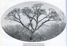A small but sexually mature tree survives beneath an oak near the Alice Lisle public house at Rockford, its trunk severely arched by its search for light.[13]
