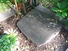 In late 2002, following investigations by her daughter Bettina, it was discovered that Meinhof's brain had been retained (apparently without permission) following the autopsy performed as part of the investigation into her death. The original autopsy had found brain injury near the amygdala, resulting from successful surgery in 1962 to remove a (benign) cyst. The unpublished autopsy results at the time stated that the brain injuries "justified questions as to the culpability" of Meinhof. Bernhard Bogerts, a psychiatrist at Magdeburg University, later re-examined the brain and also doubted that Meinhof was fully criminally responsible.[46][47] On Bettina's request, the brain was interred in Meinhof's burial place on 19 December 2002.[48][49]