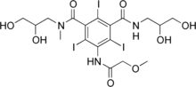 Iopromide is an iodinated contrast medium for X-ray imaging. It is marketed under the name Ultravist which is produced by Bayer Healthcare. It is a low osmolar, non-ionic contrast agent for intravascular use; i.e., it is injected into blood vessels.[2]