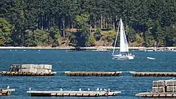 Nowadays, the former heavy industry has given way to the aquaculture sector, mainly harvesting oysters. The location is a popular retirement community.[38] The main street features a boat launch, coffee shop, market/café, and heritage buildings.