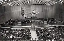 The UTC's anti-religious mission persisted. For instance, on December 26, 1968, Ion Iliescu convened an urgent session of the UTC's Central Committee to express his distress at the lack of combativeness displayed by UTC members toward 2,000 Christmas carolers the day before.[2]