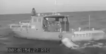 Having located and captured a spent torpedo, it could now be recovered. The early 40' and 42' torpedo retrievers had no ability to bring a weapon on board. Their crews would snare a floating torpedo, tie a line to it, and tow it to a dock or ship where it could be craned out of the water. In the absence of purpose-built torpedo retrievers, a wide variety of small boats performed similarly. Disadvantages of these early vessels included their inability to operate in difficult sea conditions, to stay on station overnight, to navigate on their own, and to recover more than one torpedo per trip. These early retrievers had no radios. They would communicate by raising a "bravo" signal flag to indicate they were recovering a torpedo.[5] Beginning with the 63' boats and continuing to the present day, all U.S. Navy torpedo retrievers have an inclined aft deck or ramp equipped with rollers that allow torpedoes to be winched aboard directly from the sea.[10] These larger vessels could recover multiple torpedoes before off-loading to a shore facility or ship.