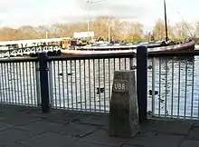 The University Boat Race Stones are two tapered, granite cuboids on southern embankments of the Tideway in west London, one 129 metres west of Putney Bridge and the other at Mortlake, 112 metres east of Chiswick Bridge.
