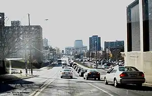 Traffic leaving University Hill towards Interstate 81 and Downtown (2005)