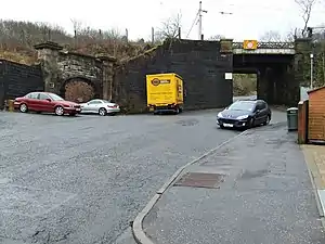 The bricked-up entrance to the old Upper Greenock station.